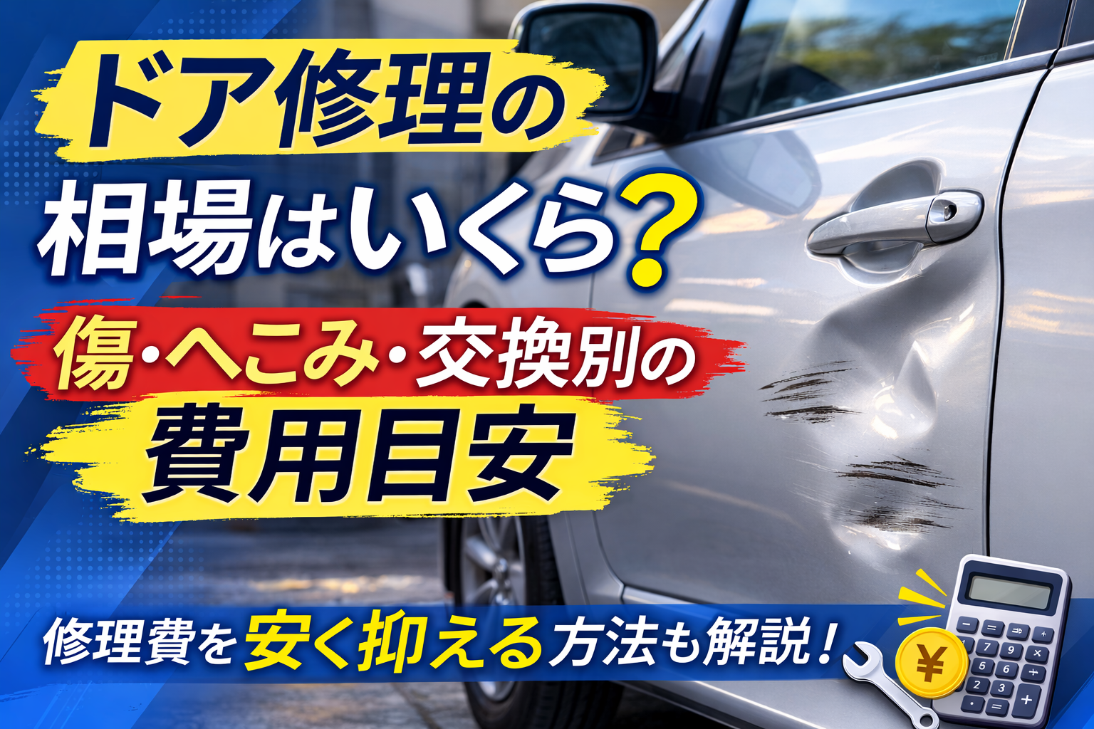 ドアをぶつけてしまい、「修理費はいくらかかるのだろう」と不安になりますよね。
