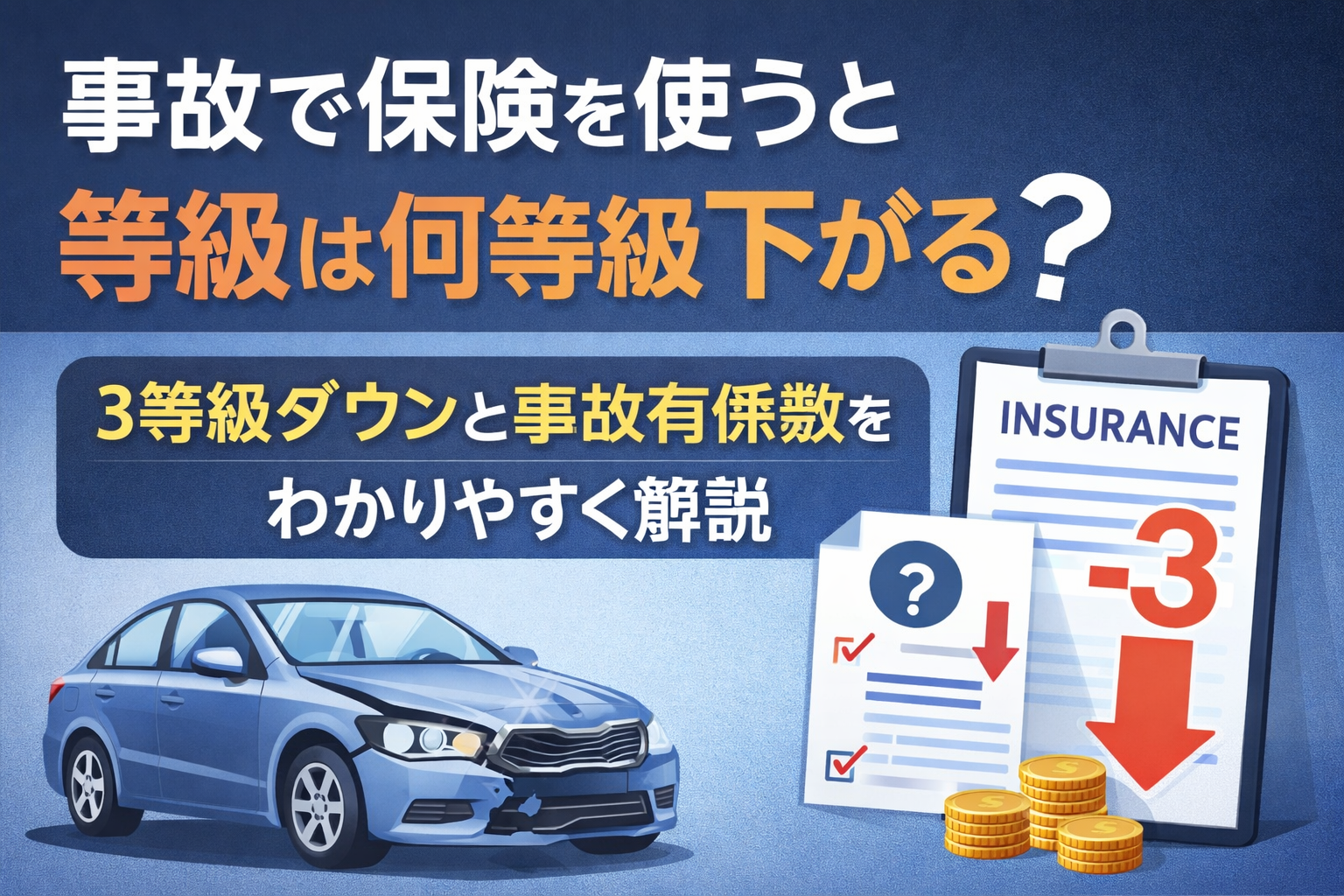 この記事では、事故で保険を使った場合の等級ダウンの仕組みと、実際にどれくらい保険料が上がるのかを分かりやすく解説します。