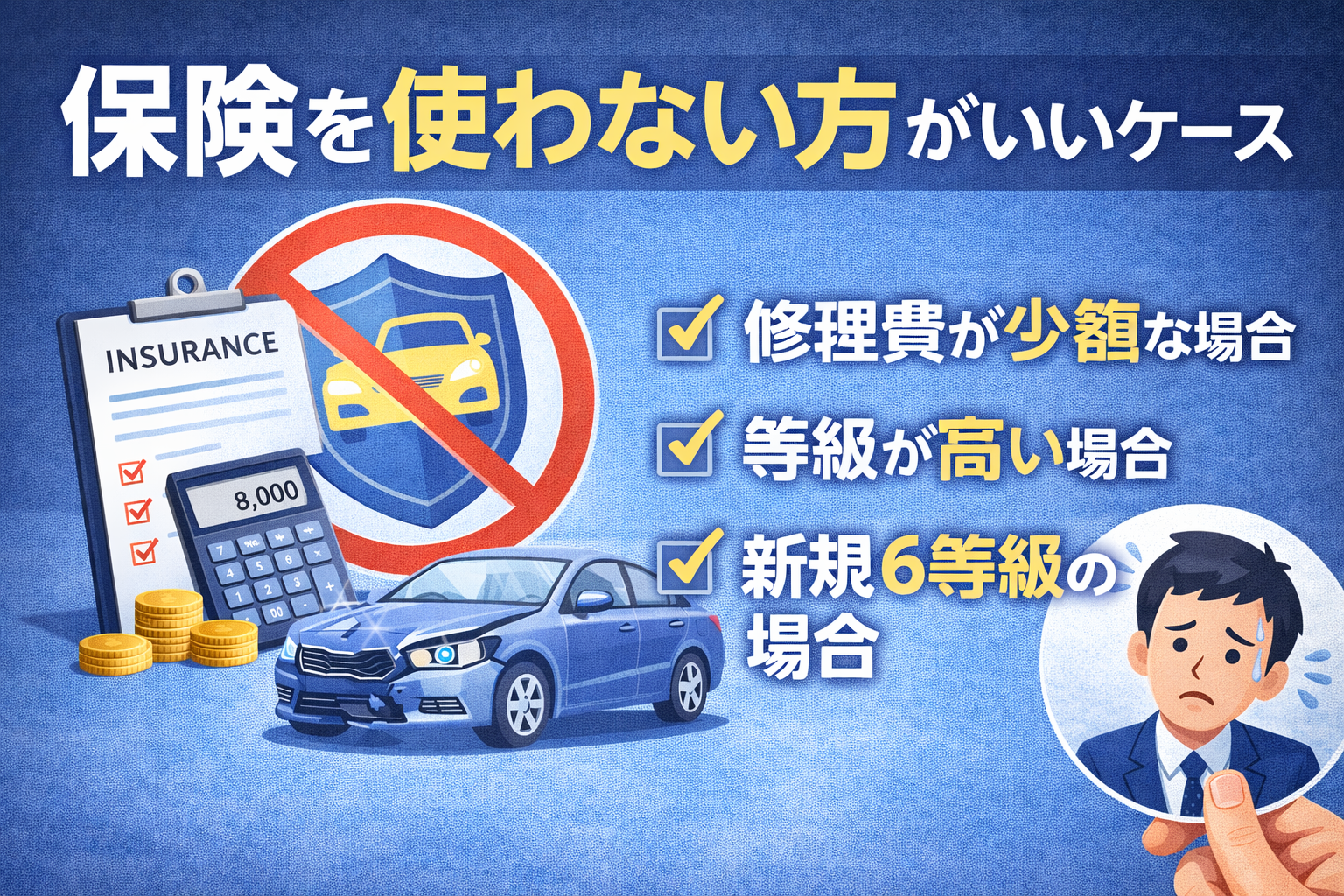 そのため、事故の内容や修理費によっては、保険を使わない方が結果的に得になるケースもあります。