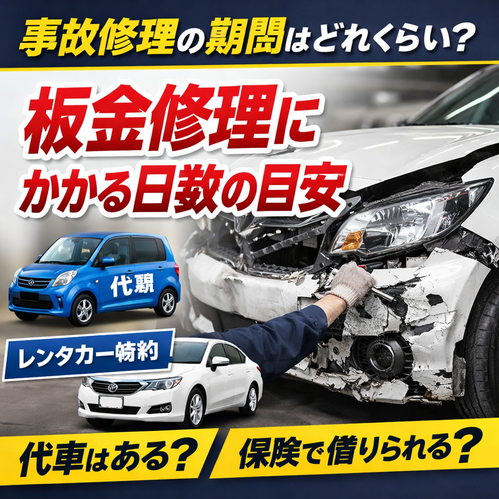 事故修理の期間は、修理内容だけでなく修理工場の混み具合によっても変わることがあります。