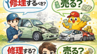 事故 事故車は修理?売る?どっちが得か徹底解説【損しない判断基準】 事故で車をぶつけてしまった時、「修理するべき?」「それとも売った方がいい?」と悩む方は多いと思います。結論から言うと👇👉 修理費が高額になる場合は、売却した方が得なケースが多いです。この記事では、損しない判断基準をわかりやすく解説します。結... 2026.04.09 事故売却